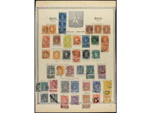 CHILE. 1853-85. Dos páginas de álbum con sellos usados, también enteros postales recortados.
