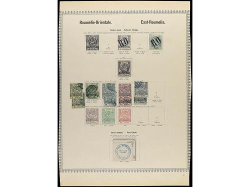 */° LOTES y COLECCIONES. 1880-81. BULGARIA y RUMELIA ORIENTAL. Página de álbum con sellos nuevos y usados y un entero postal recortado.