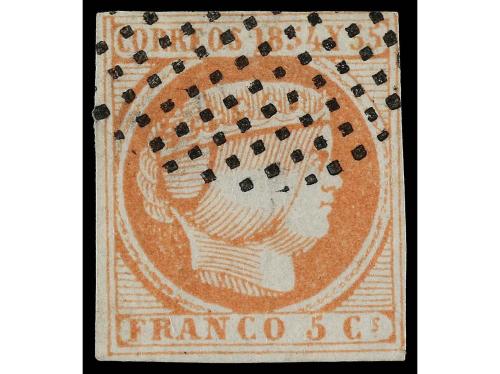 ° FILIPINAS. Ed. 1. 5 cuartos naranja. Mat. Círculo de Puntos. Color intenso e impresión fina. MAGNÍFICO EJEMPLAR. Cert. GRAUS.