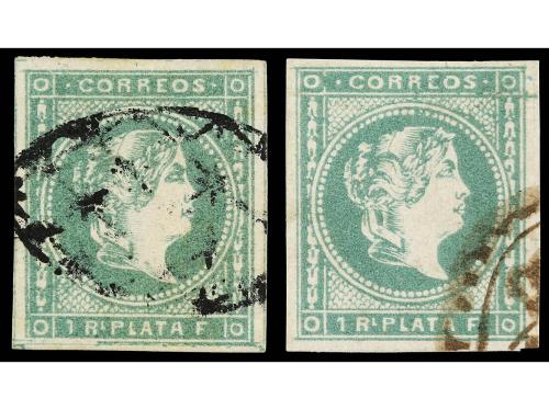 ° FILIPINAS. Ed. 16. 1 real verde esmeralda. Dos sellos. PRECIOSOS.