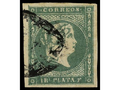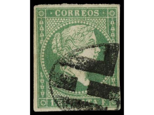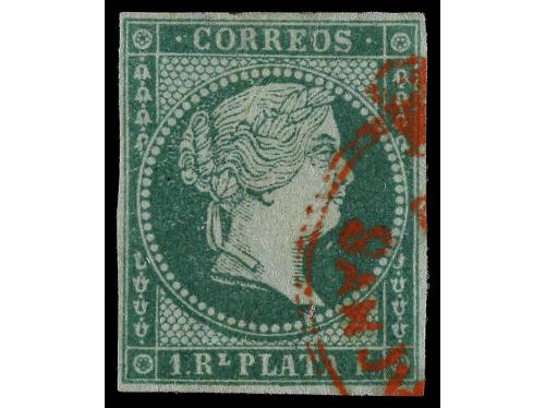 ° FILIPINAS. Ed. 6a. 1 real verde de Antillas con mat. fechador MANILA / *. Precioso y RARÍSIMO sobre el sello, primer ejemplar que hemos visto.