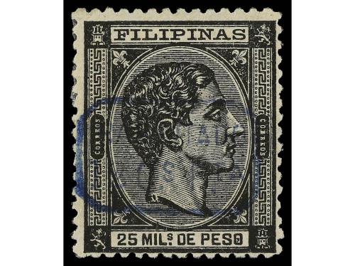 * FILIPINAS. Ed. 52hcc. 20 cts. s. 25 mils. negro. Habilitación en AZUL. Precioso y RARO. Cat. 700€.
