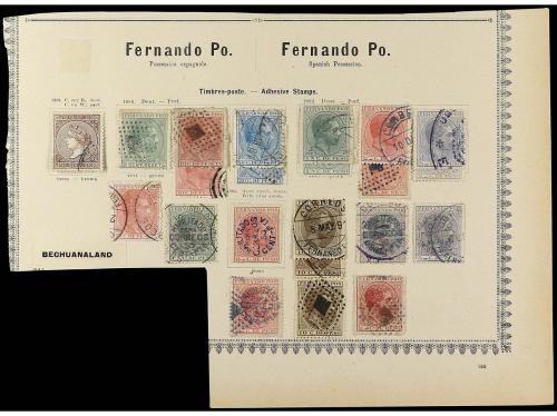 ° COLONIAS ESPAÑOLAS: FERNANDO POO. 1868-80. Página de álbum con sellos usados.