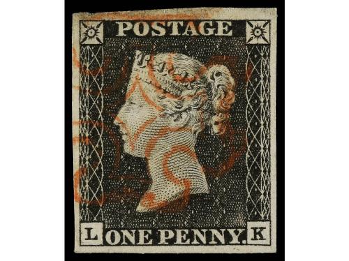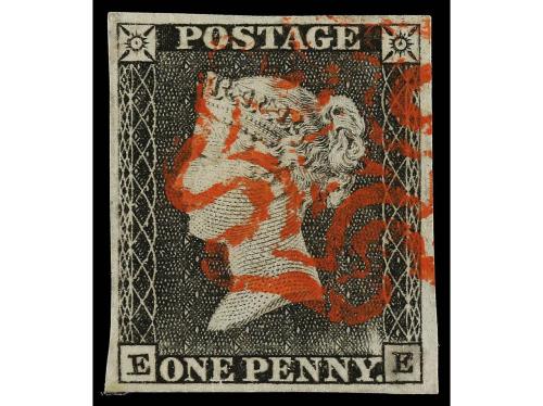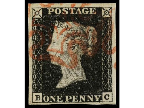 ° GRAN BRETAÑA. Yv. 1. 1840. 1 d. negro. Mat. Cruz de Malta en rojo. PRECIOSO.