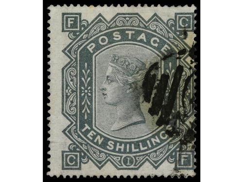 ° GRAN BRETAÑA. Yv. 41. 1867. 10 sh. gris, filigrana Cruz de Malta. BONITO.