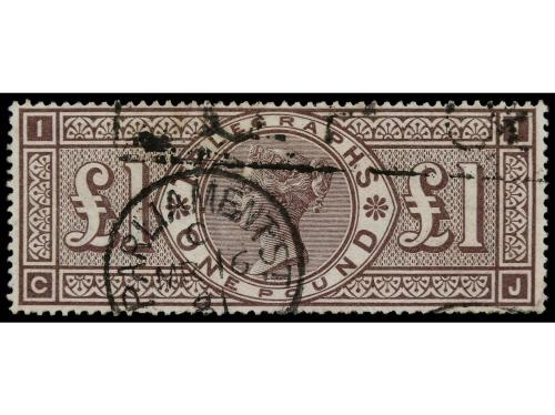 ° GRAN BRETAÑA. Yv. T-10. 1880-84. TELÉGRAFOS. 1 libra castaño lila. MUY BONITO EJEMPLAR.