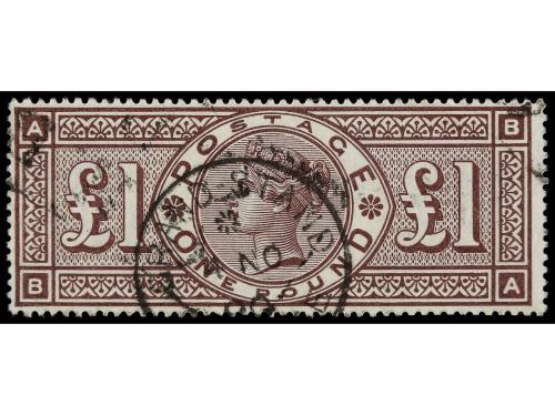 ° GRAN BRETAÑA. Yv. 89. 1884. 1 libra castaño lila, filigrana corona. MUY BONITO EJEMPLAR.