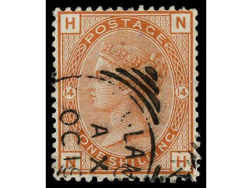 ° GRAN BRETAÑA. Yv. 54. 1880-83. 1 sh. castaño rojo, pl. 14. MAGNÍFICO.
