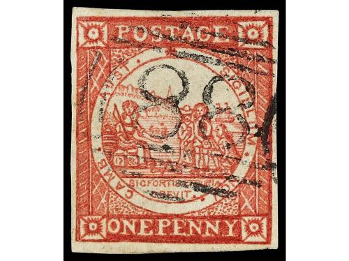 ° AUSTRALIA. Yv. 1. 1850. NUEVA GALES DEL SUR. 1 p. carmín, plancha I. MUY BONITO.