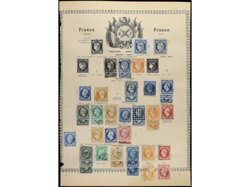 FRANCIA. 1849-82. Cinco páginas de álbum con sellos usados, también tasas y enteros postales recortados.