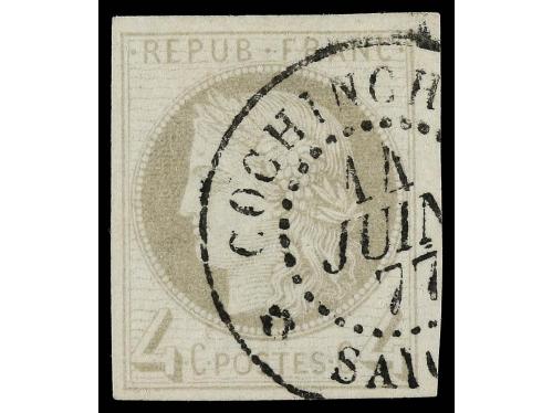 ° COLONIAS FRANCESAS. Yv. 16. 1872-77. 4 cts. gris. Mat. COCHINCHINA / SAIGON. MAGNÍFICO. Cert. Brun.