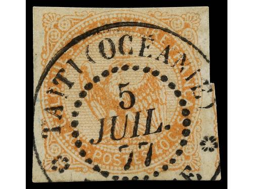 ° COLONIAS FRANCESAS. Yv. 5. 1859-65. 40 cts. naranja. Mat. TAITI (OCEANIE) / PAPEETE.