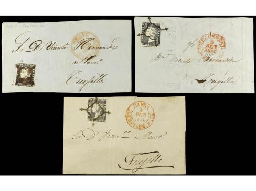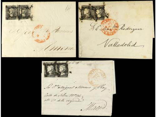 ✉ ESPAÑA. Ed. 1A (5). 6 cuartos negro. Cinco cartas circuladas con dos sellos cada una.