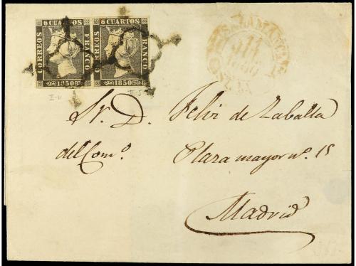 ✉ ESPAÑA. Ed. 1A (2). 1850. SALAMANCA a MADRID. 6 cuartos negro, pl. II. Sellos con márgenes completos.