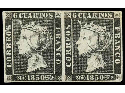 (*) ESPAÑA. Ed. 1A. 6 cuartos negro plancha II, pareja. Sello izquierdo algún corte y leves manchas del tiempo.