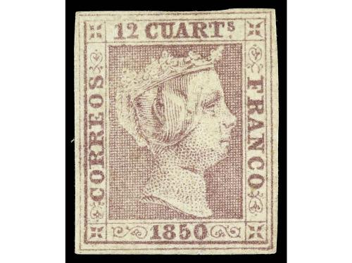 (*) ESPAÑA. Ed. 2. 12 cuartos lila. Buen ejemplar de márgenes completos. Cert. COMEX.
