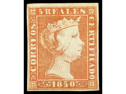 * ESPAÑA. Ed. 3. 5 reales rojo. Color intenso y buenos márgenes. PIEZA DE LUJO. Cert. COMEX. Cat. 3.400€.