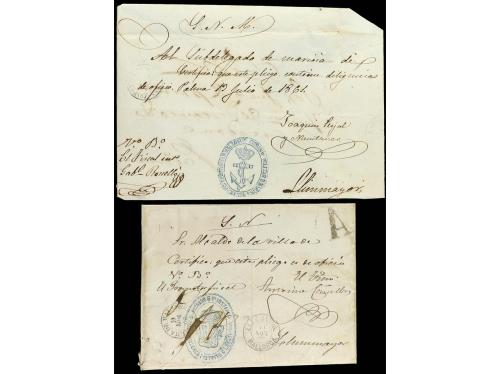 ✉ ESPAÑA. 1861-68. Dos sobres circuladas con marcas de franquicia del Juzgado de Palma y de la Comandancia de Marina, una de ellas con la A de Abono de Palma de Mallorca (nº23).