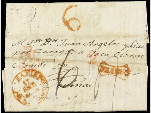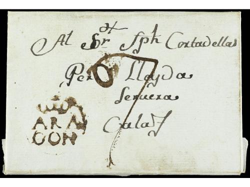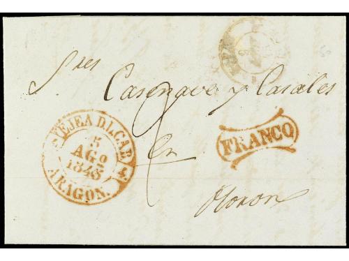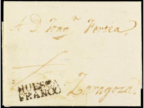 ✉ ESPAÑA: PREFILATELIA. 1822. HUESCA a ZARAGOZA. Marca HUESCA/FRANCO (nº 9). PRECIOSA y RARA.