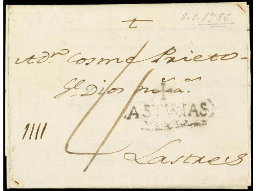 ✉ ESPAÑA: PREFILATELIA. 1786. OVIEDO a LASTRES. Marca +/ASTURIAS (nº 6) de Oviedo. RARA.