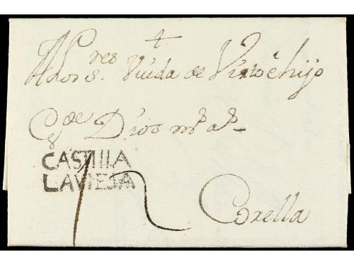 ✉ ESPAÑA: PREFILATELIA. 1757. SORIA a CORELLA. Marca CASTILLA/LA VIEJA (nº 1) (DP. 3) de SORIA. PRECIOSA y RARA.