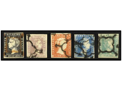 ° ESPAÑA. Ed. 1. 6 cuartos, conjunto de seis sellos, dos con mat. fechador del 6 y del 11 de enero.