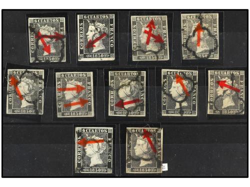 ° ESPAÑA. Ed. 1 y 1A. 6 cuartos. Conjunto de 11 sellos con variedades de impresión.