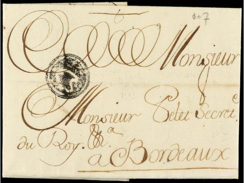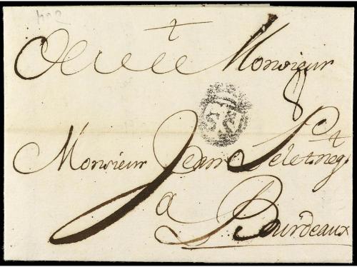 ✉ ESPAÑA: PREFILATELIA. 1730. SAN SEBASTIÁN a BURDEOS. Marca S.S. de San Sebastian (nº 2). MUY BONITA y RARA.