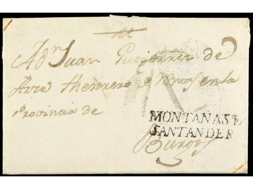 ✉ ESPAÑA: PREFILATELIA. 1743. SAN SEBASTIÁN a FRANCIA. Marca S.S. dentro de dos círculos en negativo de San Sebastián (nº 4). MUY RARA .