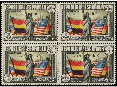 (*) ESPAÑA. Ed. 765. Aéreo + 5 pts. multicolor. Bloque de cuatro sin goma.