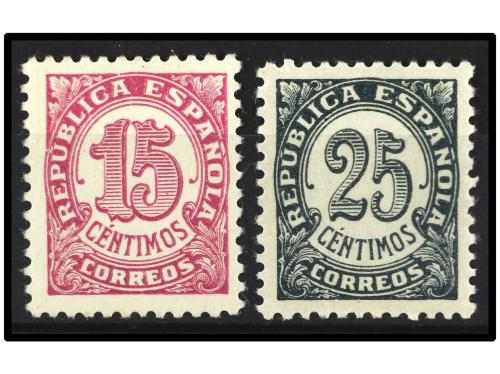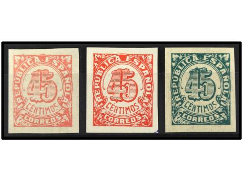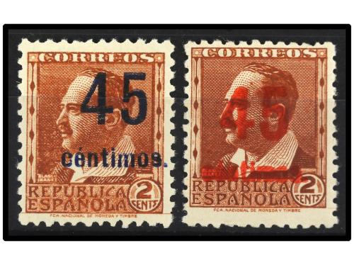 ** ESPAÑA. Ed. NE 28a, 28b. NO EXPENDIDO. 45 cts. s. 2 cts. castaño. Habilitación en rojo y negro. PRECIOSOS.