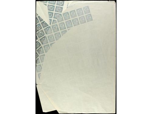 ** ESPAÑA. Ed. 747. 15 cts. verde. Hoja de 100 sellos, importantes defectos de impresión producidos por pliegue del papel.