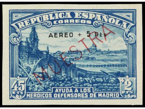 (*) ESPAÑA. Ed. 759M. Aéreo + 5 pts. azul. Habilitado MUESTRA, sin goma tal y como fue emitido. PRECIOSO. Firmado ROIG. Cat. 525€.