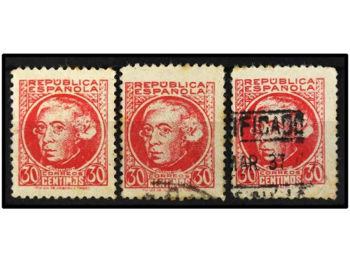 */° ESPAÑA. Ed. 687F (3). 30 cts. rojo. FALSO POSTAL. 3 sellos, uno en nuevo con pequeño corte.