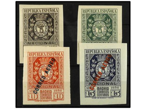 ** ESPAÑA. Ed. 727/28M y 729/30M. SERIE de correo y aérea, habilitados MUESTRA. Cat. 355€.