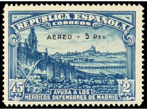 ** ESPAÑA. Ed. 760. HB. Aéreo + 5 pts. RARA sin fijasellos. LUJO. Cert. COMEX. Cat. 6.500€.
