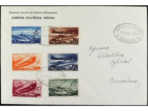 ✉ ESPAÑA. Ed. 775/80. 1938 (14 Agosto). MAHÓN a BARCELONA. Serie completa. 6 valores en S.P.D.