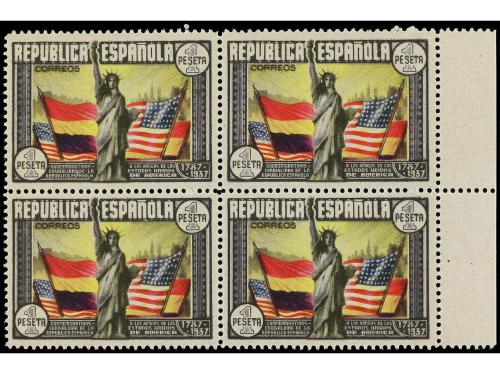 ** ESPAÑA. Ed. 763 (4). 1 pta. multicolor. Bloque de cuatro. LUJO.
