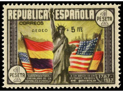 ** ESPAÑA. Ed. 765hhs. Aéreo + 5 pts. HABILITACIÓN DOBLE. SIN DENTAR. Magnífico ejemplar. Cert. COMEX. Cat. +525€.