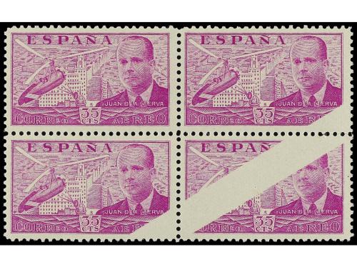 ** ESPAÑA. Ed. 882ip (3). 35 cts. lila carmín. Bloque de 4, 3 sellos VARIEDAD DE IMPRESIÓN. Cat. +249€.
