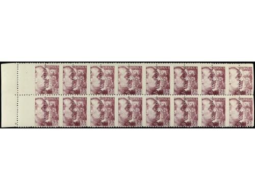** ESPAÑA. Ed. 932. 2 pts. castaño. Hoja completa de 100 sellos con EMPALME DEL PAPEL quedando alrededor de 25 sellos sin imprimir. Espectacular variedad.