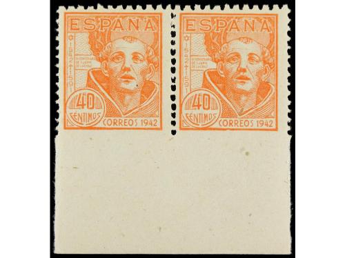** ESPAÑA. Ed. 955smz (2). 40 cts. rojo anaranjado. Pareja horizontal SIN DENTAR MARGEN INFERIOR.