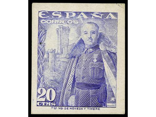 ESPAÑA. Ed. NE 60. NO EXPENDIDO. 20 cts. ultramar PRUEBA DE PUNZÓN. EXTRAORDINARIAMENTE RARO, primer ejemplar que vemos. (Gálvez 3601).