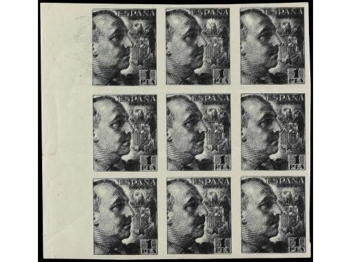 ** ESPAÑA. Ed. 930eds. 1 pta. gris. Bloque de 9 DOBLE IMPRESIÓN y SIN DENTAR. Cat. 675€.