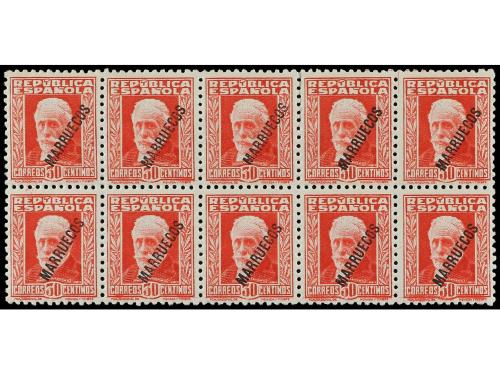 ** COLONIAS ESPAÑOLAS: TANGER. Ed. 6/11 (50). BENEFICIENCIA. 50 SERIES COMPLETAS. 6 valores en bloques. Cat. 4.500€.