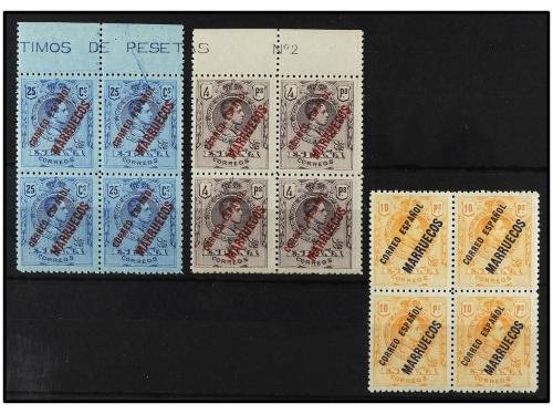 ** COLONIAS ESPAÑOLAS: TANGER. Ed. 96/107 (4). SERIE COMPLETA, 12 valores en bloques de cuatro. Cat. 1.040€.