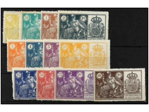 COLONIAS ESPAÑOLAS: FERNANDO POO. 1902. SERIE COMPLETA. 12 valores, incluyendo el 100 pts. rosa. MUY RAROS.