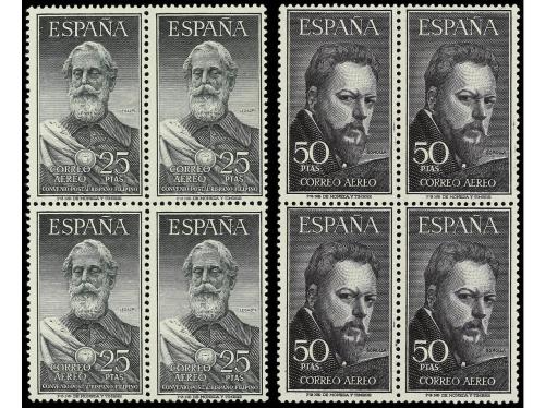 ° ESPAÑA. Ed. 1124/5 (4). SERIE COMPLETA. 2 valores en bloques de cuatro. Muy bien centrados. Cat. 280€.
