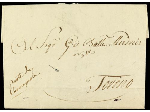 ✉ ITALIA ANTIGUOS ESTADOS: CERDEÑA. Sa. 4. 1822. CARMAGNOLA a TORINO. Carta completa con texto "CAVALLINI" de 15 cents. estampado en seco. Firmado A. BOLAFFI.
