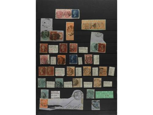 º Δ PUERTO RICO. 1865-80. Página de álbum con sellos británicos con matasellos F-85 de la B.P.O. de MAYAGUEZ. Diversos sellos incluyendo tres fragmentos (SG. +2.200 £).